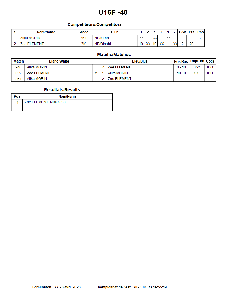 Championnat de l'est 22-23 avril 2023 Edmunston